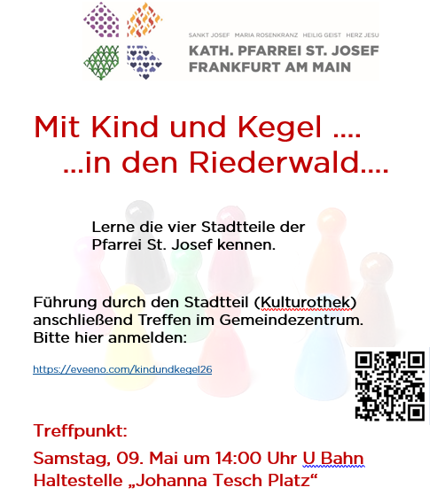 Die Pfarrei St. Josef Frankfurt am Main, wie sie offiziell heißt, besteht aus vier Stadtteilen (Bornheim, Fechenheim, Riederwald, Seckbach) in denen vier katholische Kirchen (St. Josef, Herz Jesu, Heilig Geist, Maria Rosenkranz) stehen. Es gibt in diesen Stadtteilen einiges zu erkunden.