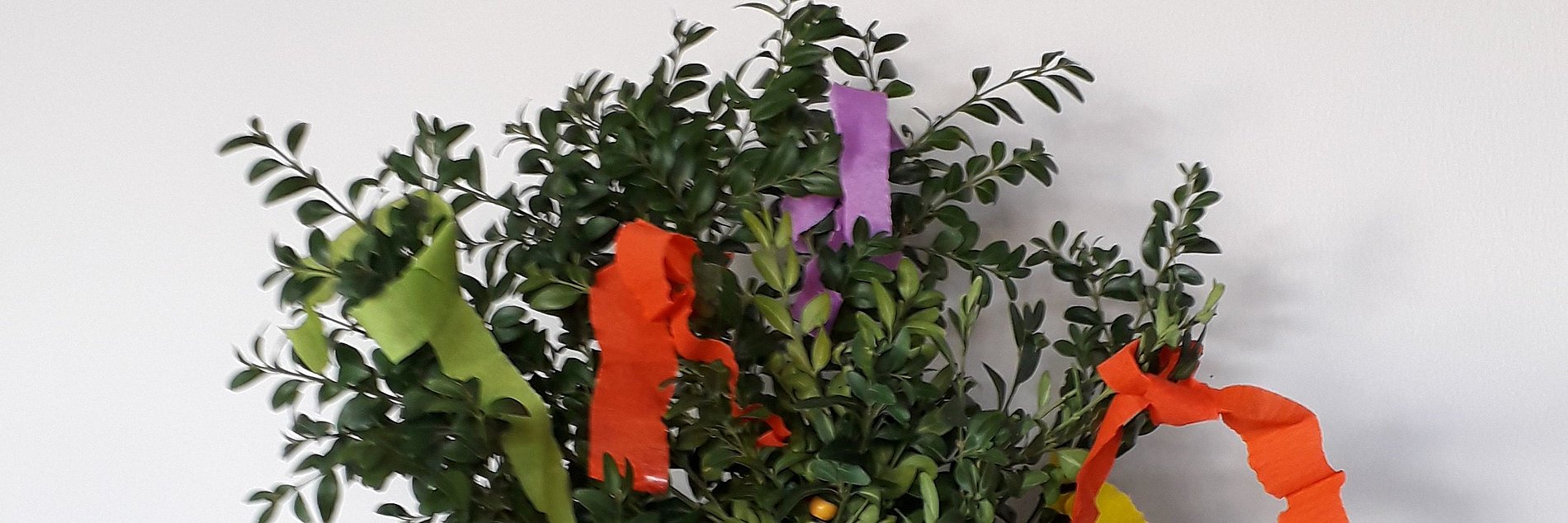 Wir möchten mit Euch Palmstöcke basteln und freuen uns auf euch: