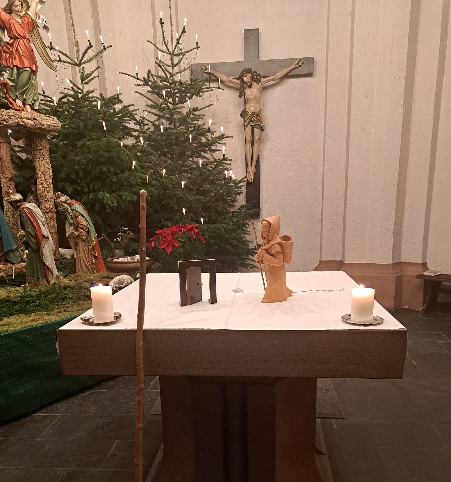 Der Kirchort Herz Jesu, Fechenheim gestaltete seinen Krippenweg im Advent 2024 zum Leitwort des Heiligen Jahres "Pilger der Hoffnung".