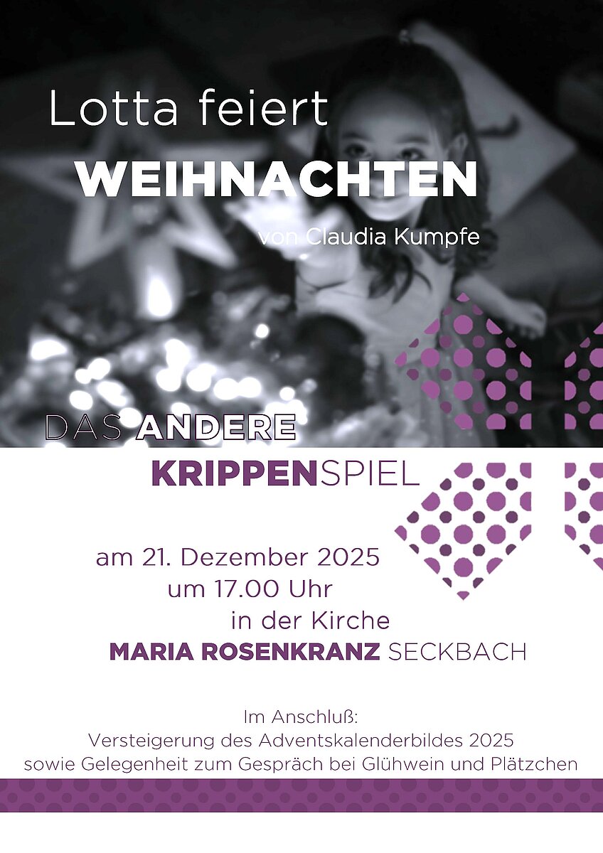 Das Krippenspiel für Erwachsene ist seit 15 Jahren Bestandteil des Seckbacher Adventskalenders. Entstanden ist dieses besondere Event aus dem Engagement einiger Kindergarteneltern, die in Eigenregie die Krippenspiele realisierten. Inzwischen spielen die Eltern der nächsten Generation mit den ehemaligen Kindern unserer Kita.