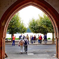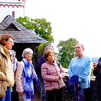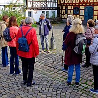 Beginnend im Hof der kurfürstlichen Burg aus dem 13. Jahrhundert zeigte uns die bewanderte Stadtführerin so manches Schmankerl ihrer Stadt. Die Gruppe erfuhr dabei, dass Eltville die älteste Stadt im Rheingau ist.
