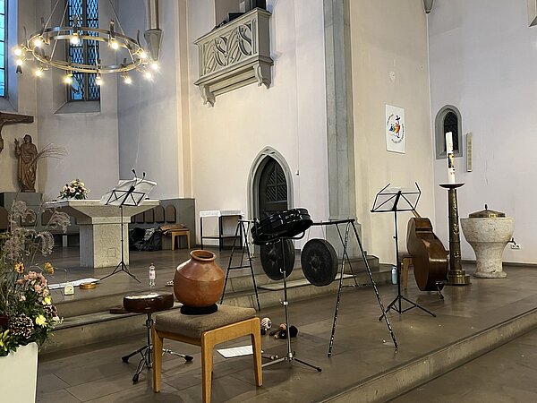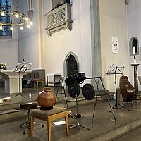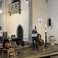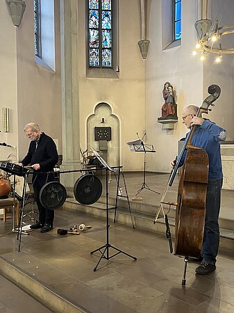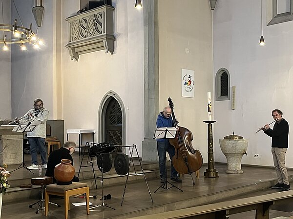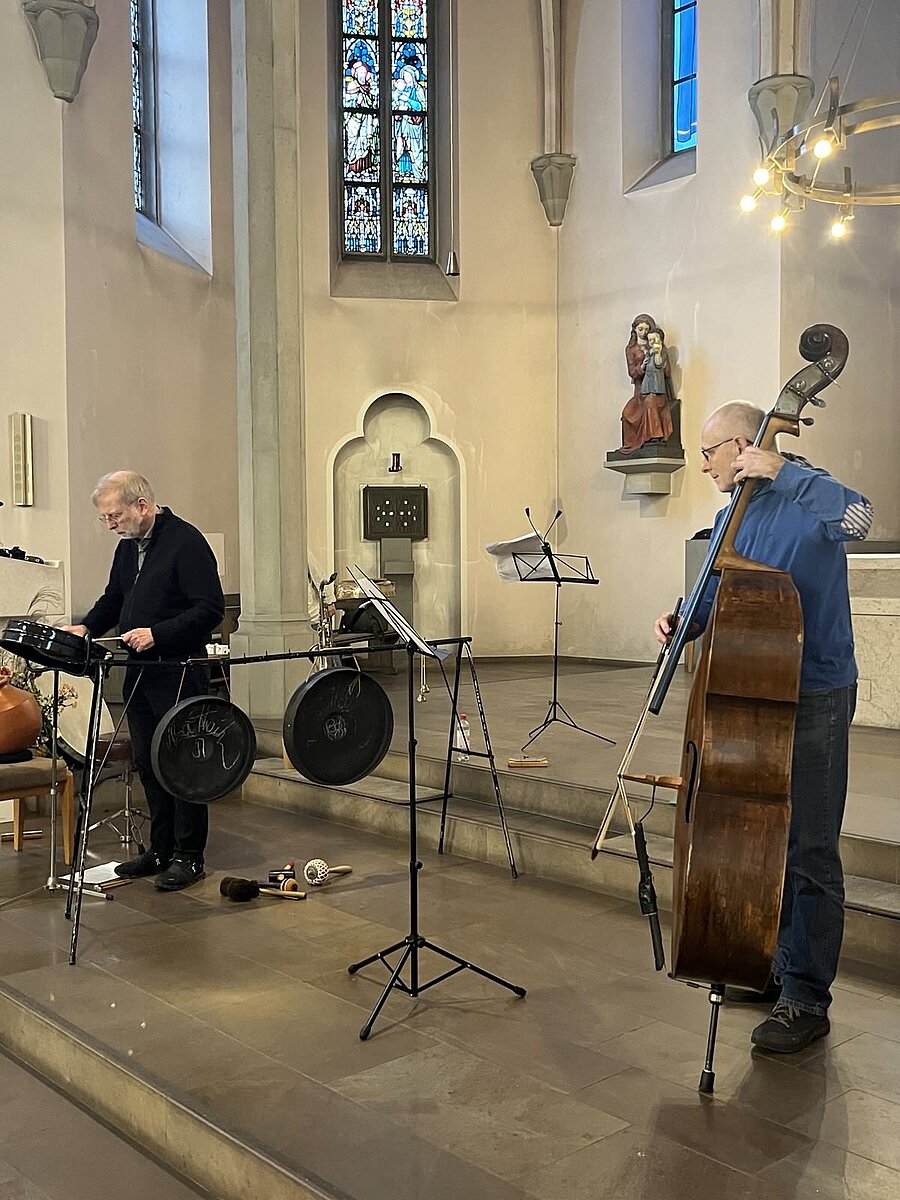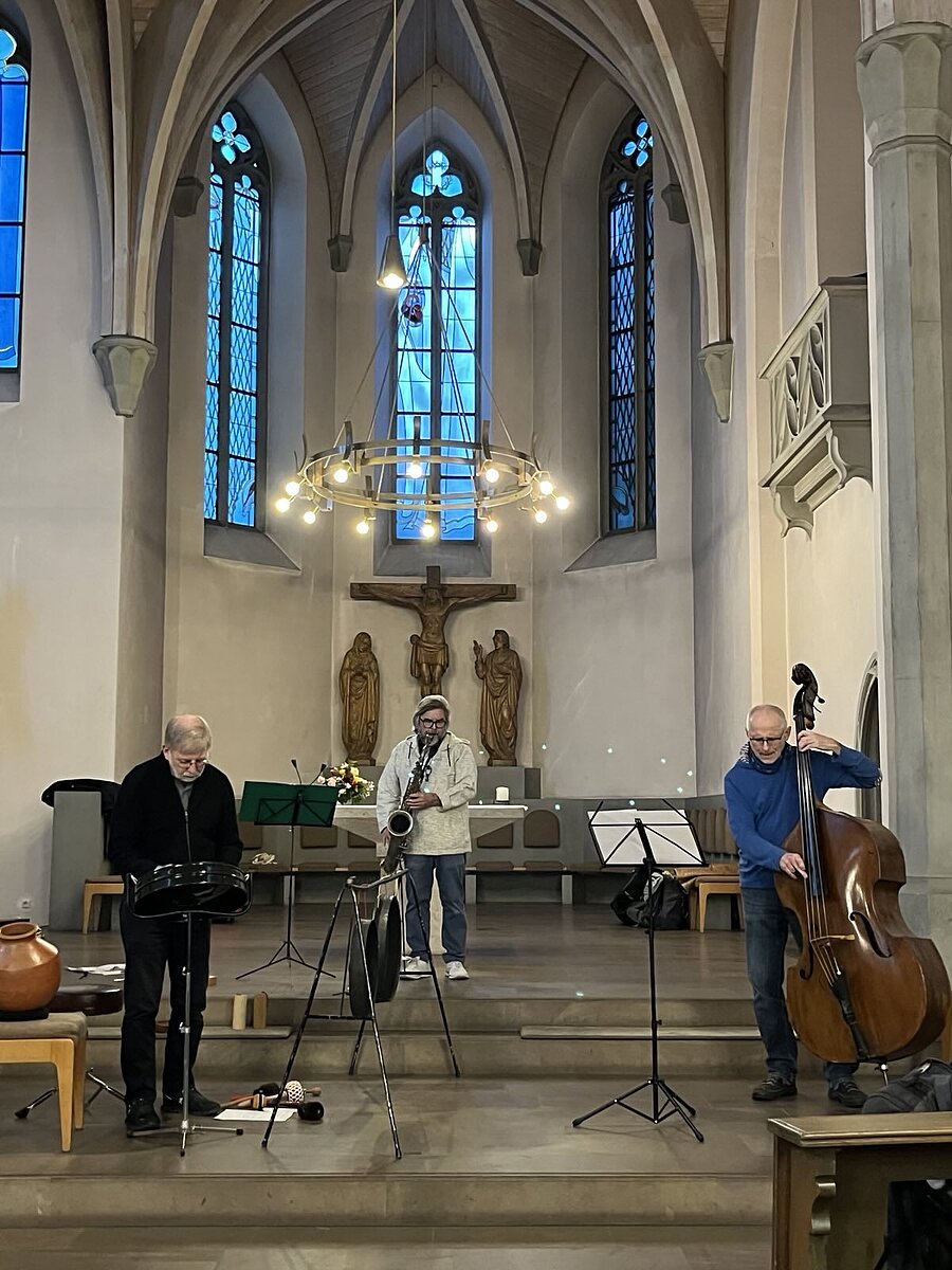Die Katholische Kirchengemeinde Herz Jesu und der Fechenheimer Musiker Eberhard Emmel laden für November an den Donnerstagnachmittagen ab 16.00 Uhr zum Innehalten und zu meditativen wie experimentellen Klangphantasien ein. Eberhard Emmel spielt Saxophone, Klarinetten, Flöten, Kalimbas, Gongs und diverse exotische Instrumente. Es gibt Solo-Improvisationen, aber auch musikalische Begegnungen mit Überraschungsgästen. Mit ihm musizieren Christian Kassühlke am Kontrabass, Claus Thiede - Percussion und Gongs, sowie Armin Reuss - Flöte.