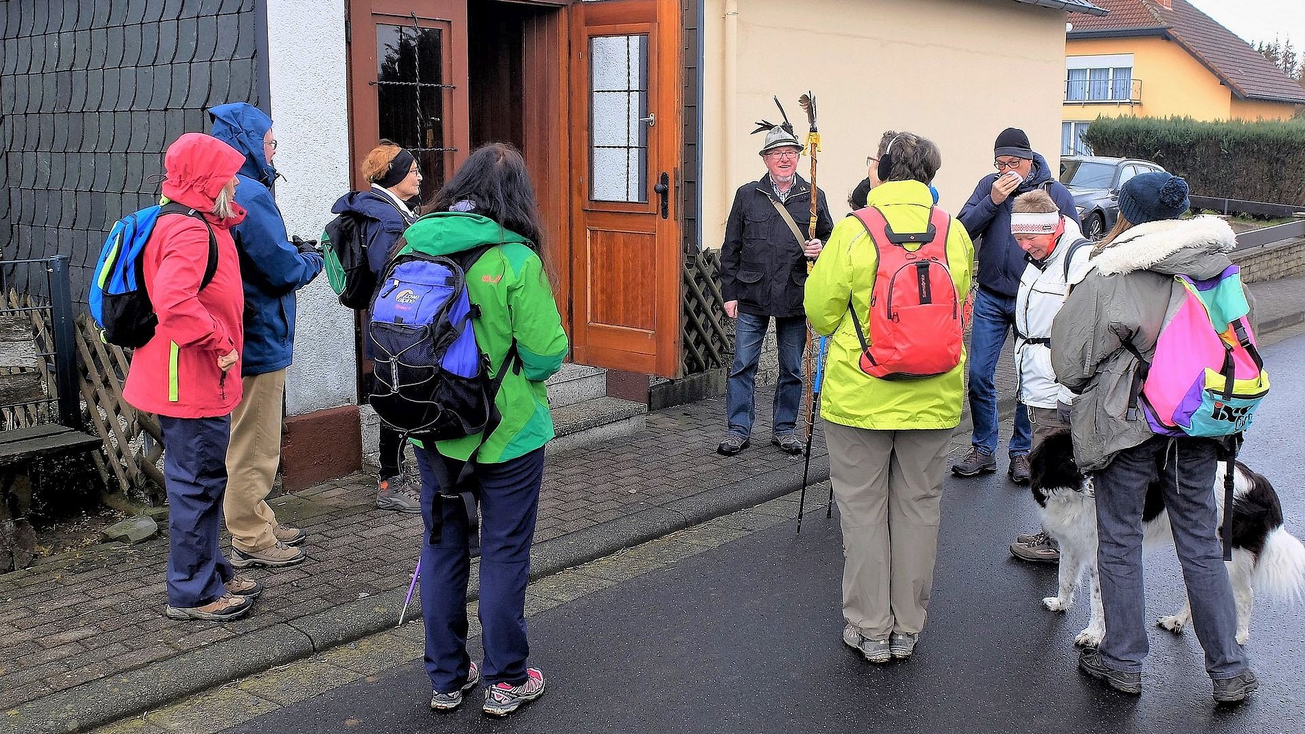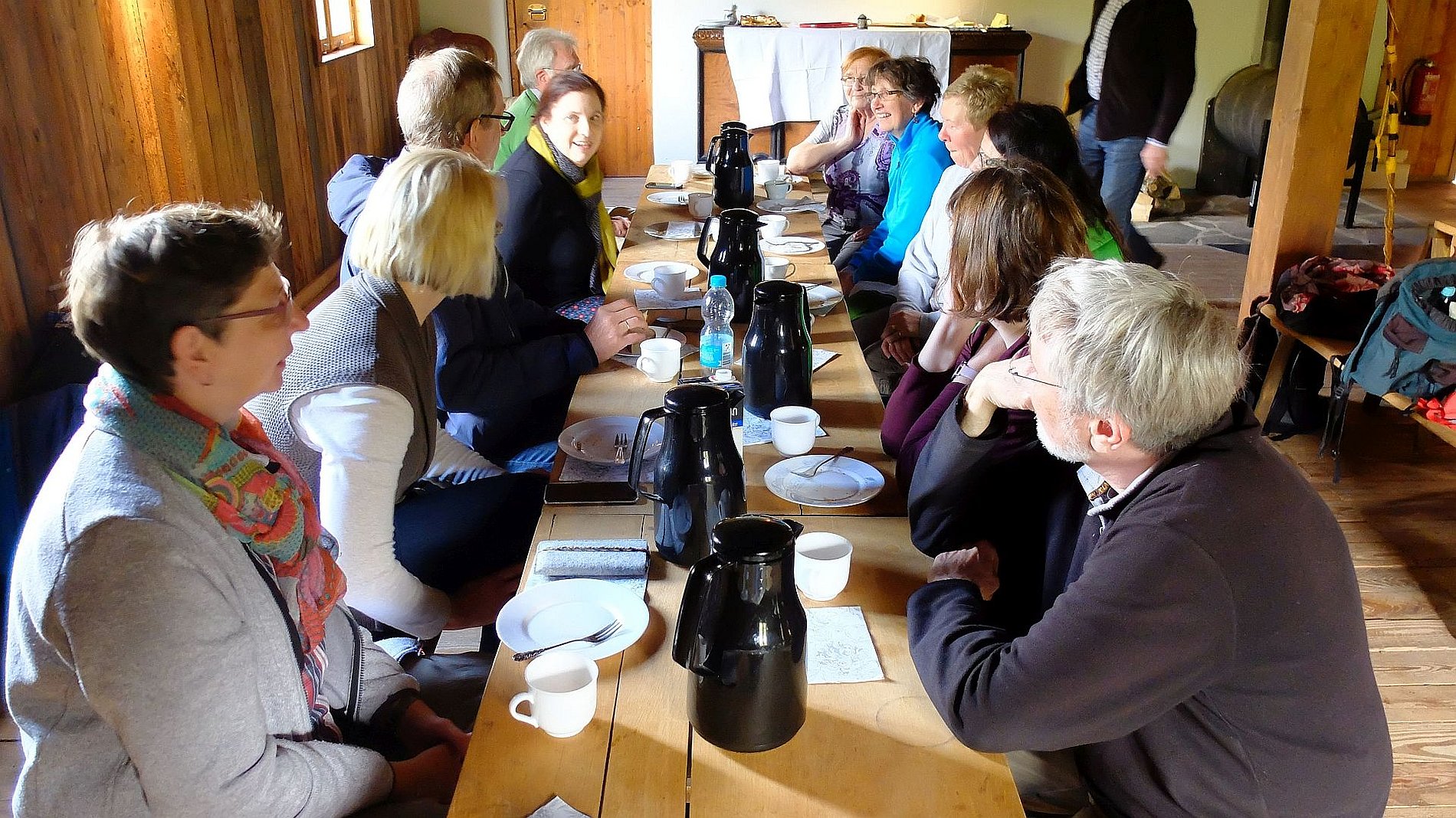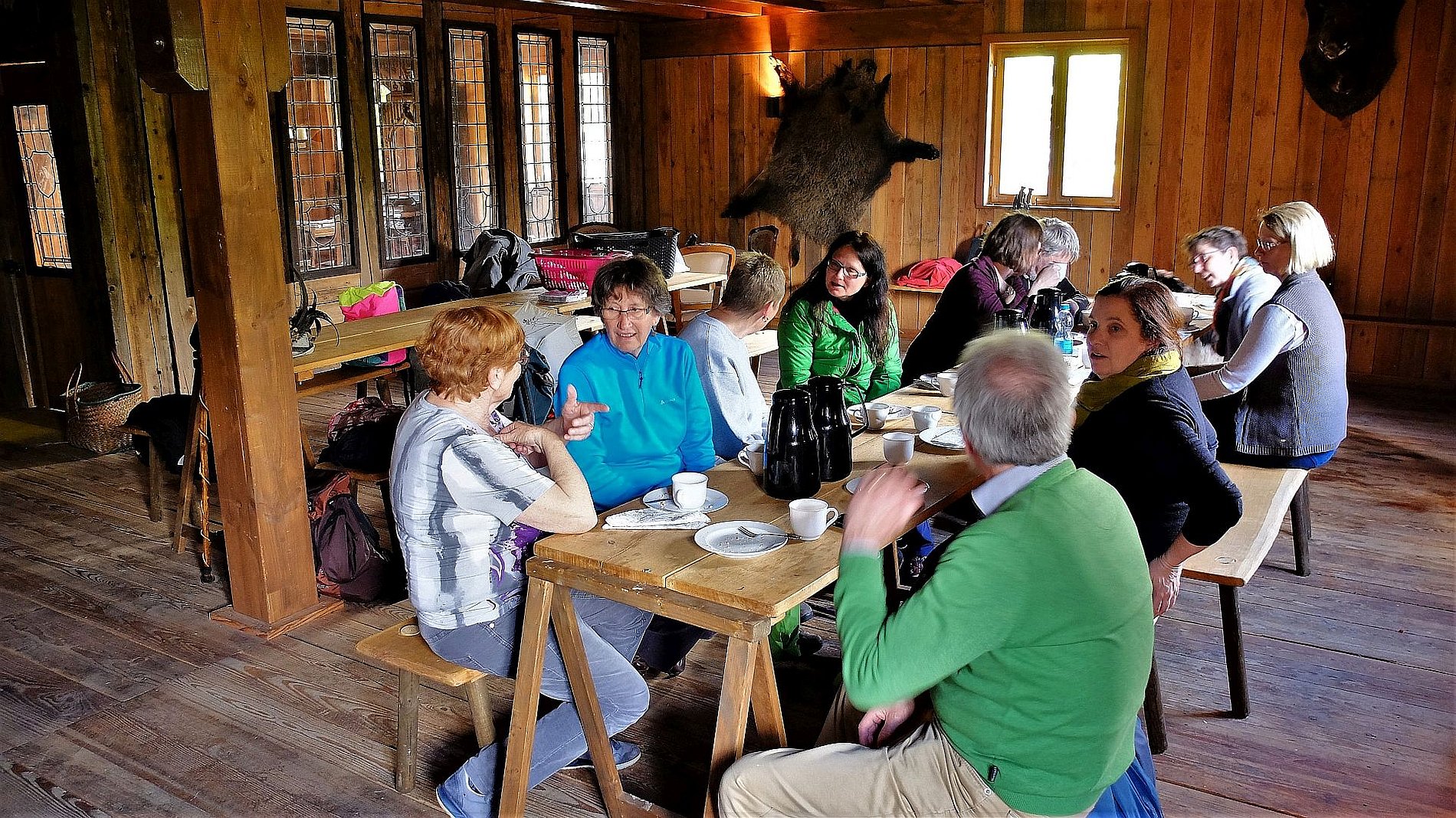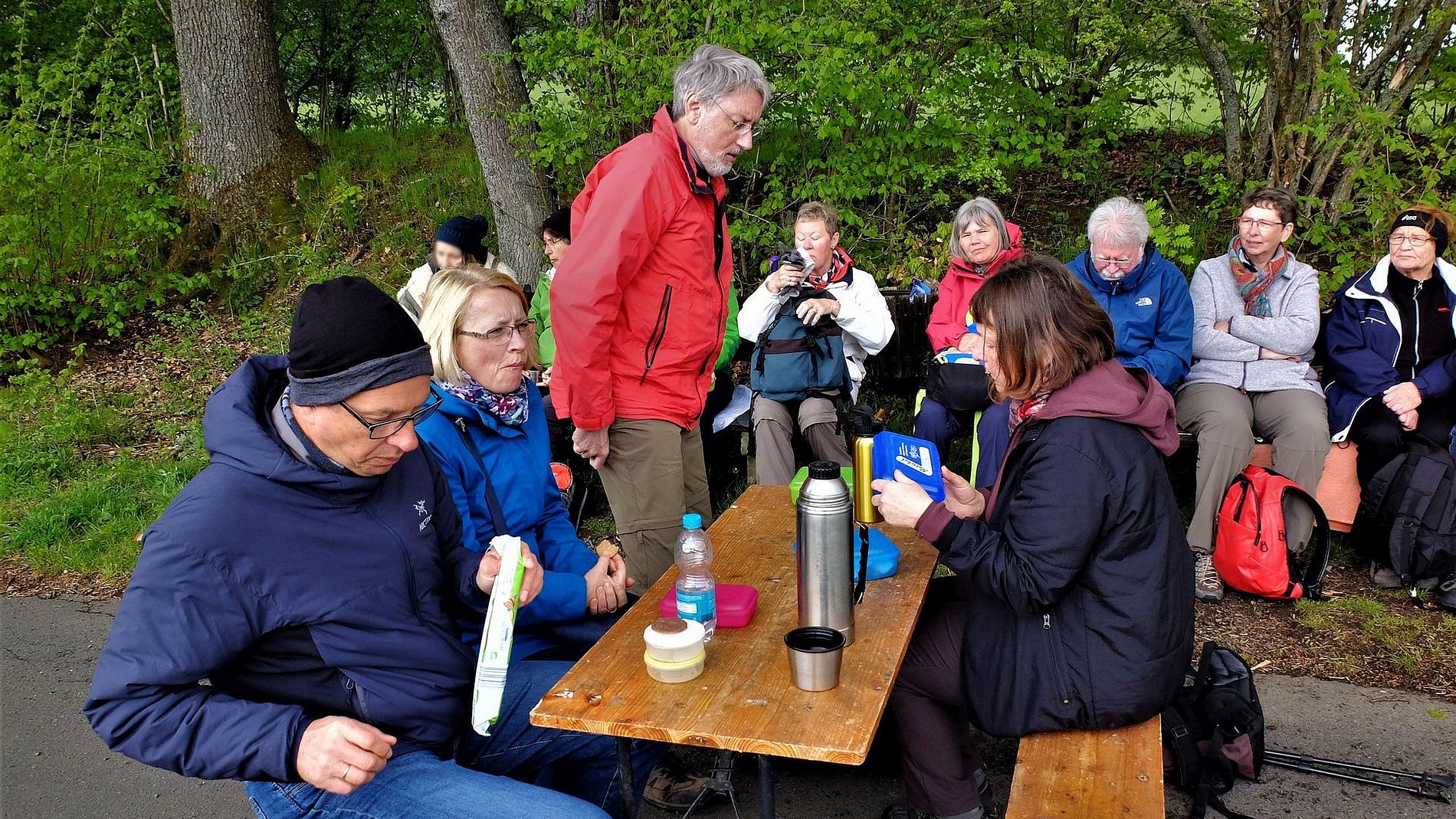 Als die Wandergruppe von Sankt Josef am 5. Mai ihre Wanderung im Westerwald startete, zeigte sich der Wonnemonat überhaupt nicht wonnig. Und dennoch hatten die Wanderer an diesem Tag das Glück, die Strecke von 17 km ohne nennenswerte Niederschläge zu schaffen. Auf dem Programm stand eine „Kapellen- und Bildstockwanderung“, die Einblicke in die Vielfalt der religiösen Volkskunst gab. Den Schluss der Wanderung bildete ein Besuch der Rotenhainer Motte „Alte Burg“ bei gemütlichem „Kaffee und Kuchen“ nach Westerwälder Art. Zur Erklärung: Motten waren kleine mittelalterliche Turmhügel- oder Erdhügelburgen; häufig Sitze des Kleinadels. Die meisten Motten dürften untergegangen sein. In Rotenhain im Westerwald wurde von Generation zu Generation weitergegeben, das da irgend etwas wie eine Burg im Wald gewesen sein muss; schließlich heißt ein entsprechendes Flurstück „Alte Burg“. Und tatsächlich: Bei Wegearbeiten stieß man vor einigen Jahren auf die Grundmauern und einen alten Brunnen einer Motte. Wie diese Motten im Mittelaltern aussahen, kann nur vermuten werden. Es gibt nämlich nur sehr wenige Bildzeugnisse. So bauten Ehrenamtliche auf den lange verschollenen Grundmauern einer Motte die „Alte Burg“ auf und zwar so, wie es sich das anhand der wenigen Quellen vermuten lässt. Die Wandergruppe läuft also nicht „nur“ durch Wald und Feld, sondern zeigt sich auch interessiert an den geschichtlichen und kulturellen Hintergründen des jeweiligen Wandergebiets.