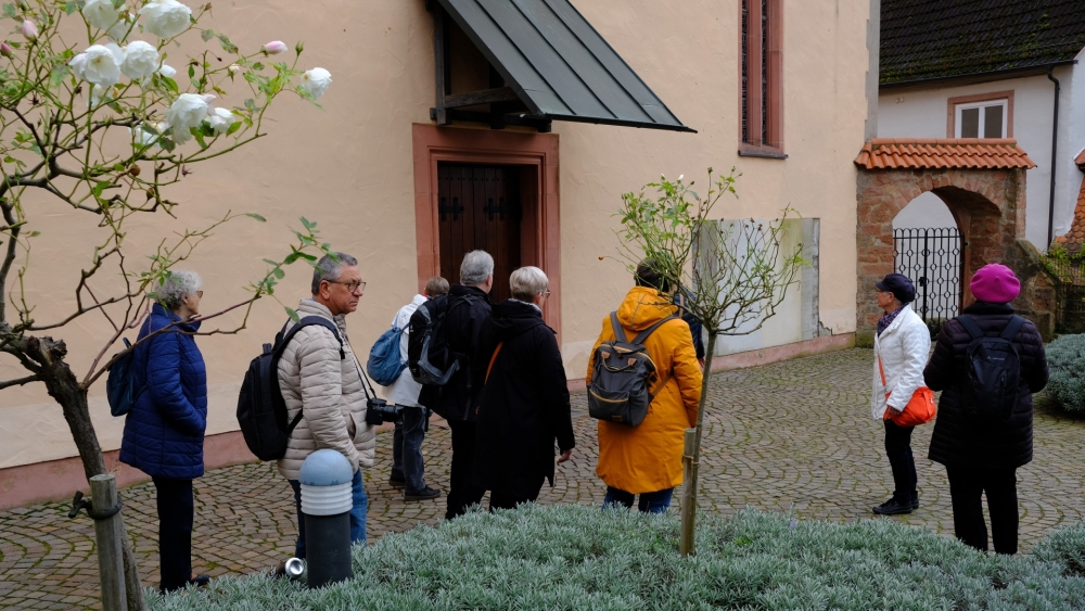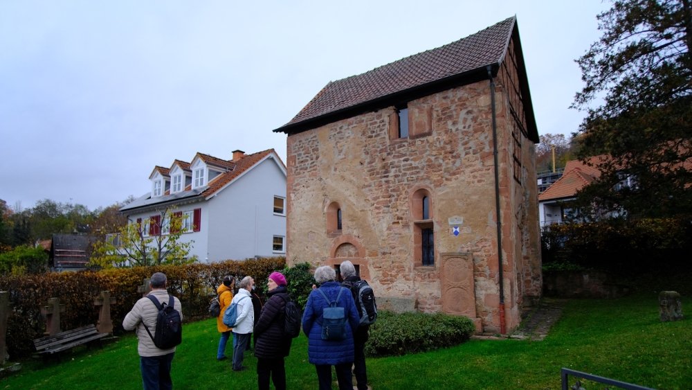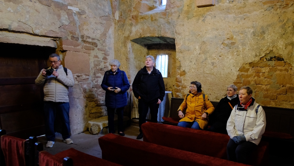 Es folgte ein Gang über Treppen, Torbögen, alten Befestigungsanlagen vorbei am ältesten Sakralbau des Kinzigtals, der Godobertskapelle, und dann stand die Gruppe vor dem Höhepunkt ihrer Exkursion.