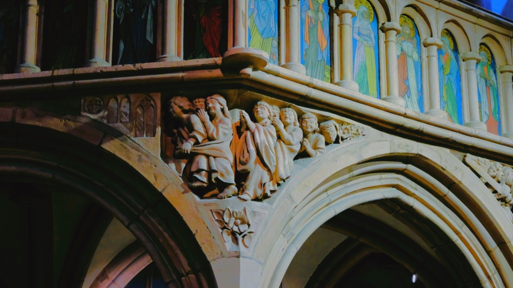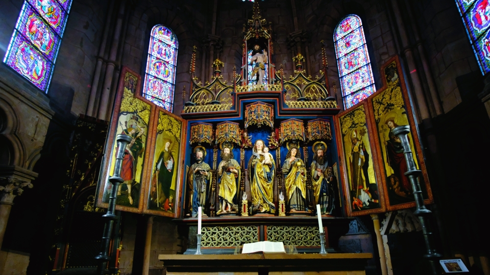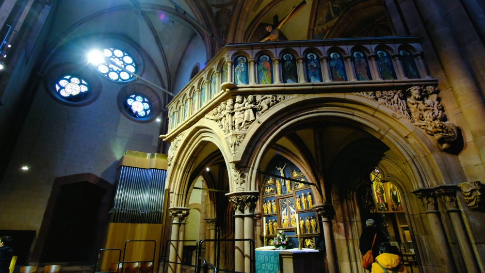 Die Marienkirche zog die Fahrtteilnehmer sofort in ihren Bann; eine wahre Krone des Kinzigtals. Im Zusammentreffen romanischer und gotischer Elemente beeindruckte das Gotteshaus von außen und von innen. Als Höhepunkte der Innenausstattung sind der oktogonale Lettner mit seiner reichen Bilderpracht und den Reliefs sowie der gotische Hochaltar zu nennen.
