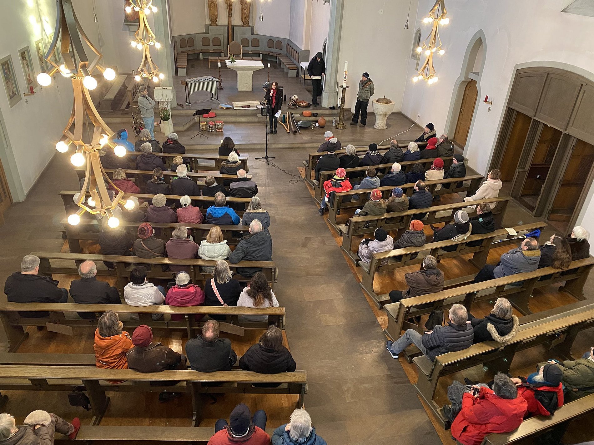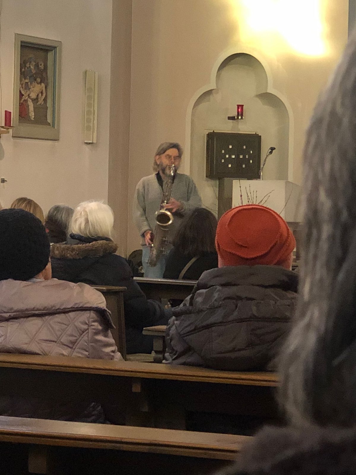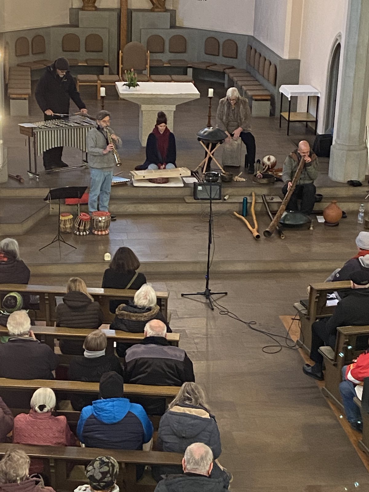 Bei dem Konzert in der Herz Jesu-Kirche konnten sich alle Zuhörer auf eine meditative Klangreise begeben. Das Konzert war der eisige Startpunkt einer Reihe unter dem Motto „Fechenheim Sound Stories“. Manche Zuschauer hatten vorausschauend Decken mitgebracht, aber im Anschluss an das Konzert konnte man sich bei einem kleinen Umtrunk im Gemeindezentrum austauschen und sich aufwärmen.