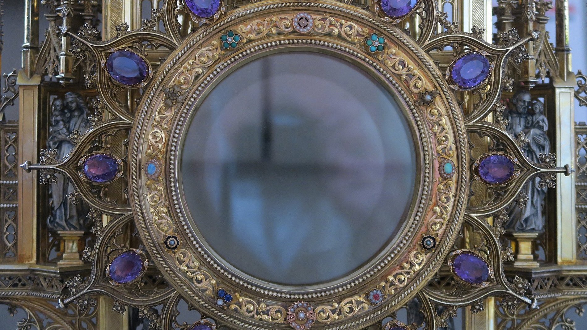 Kaum bemerkt wird die kleine silberne Statue des Heiligen Josefs an der alten Monstranz. Einerseits findet die alte Monstranz heute kaum noch Verwendung, andererseits kommt sie auch dort nur in entsprechender Vergrößerung zur Geltung.