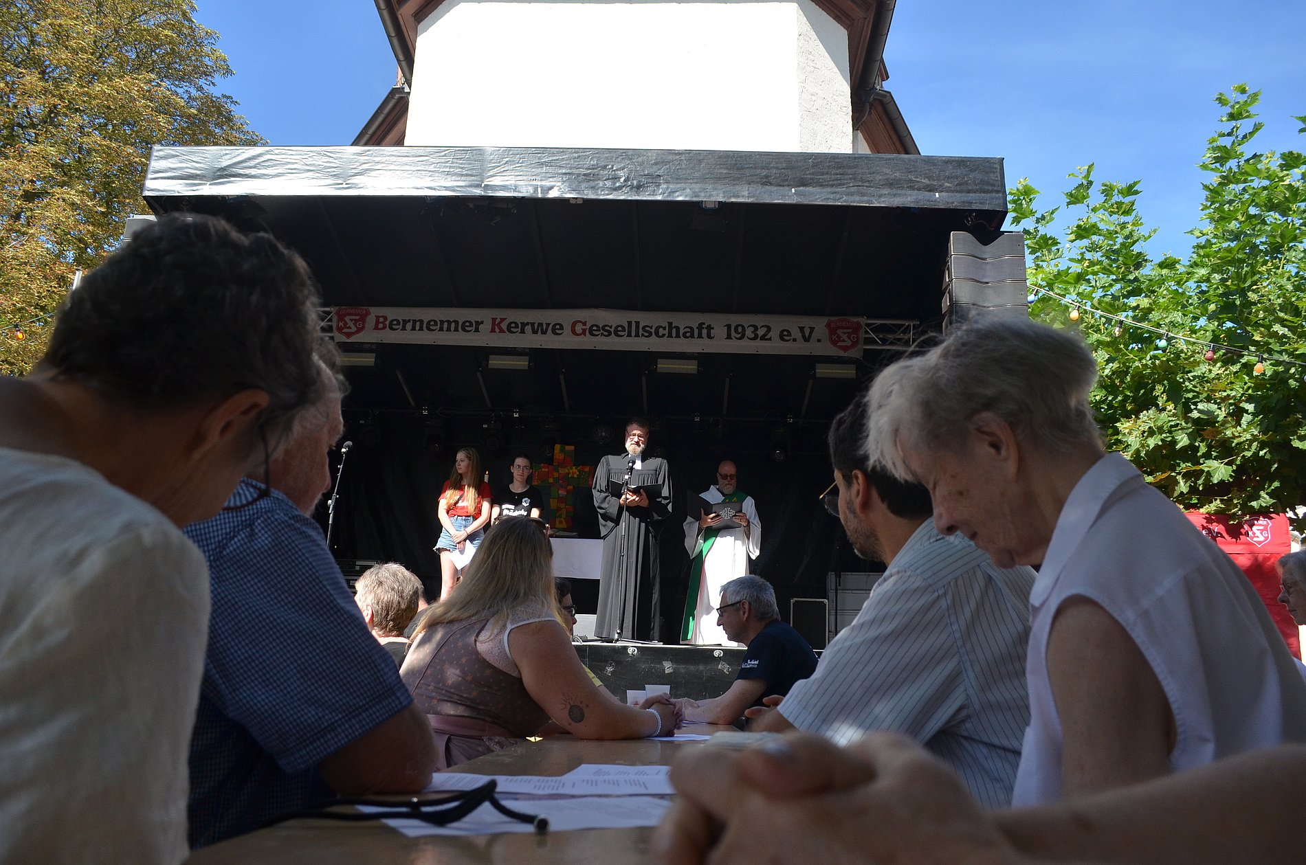 In den Fürbitten baten Mitglieder der Kerwe-Gesellschaft um eine bessere Welt, Frieden unter den Menschen und Gerechtigkeit. "Wir sehen, wie andere Menschen ausgegrenzt werden, das würden wir so gerne ändern", heißt es in einer Fürbitte.