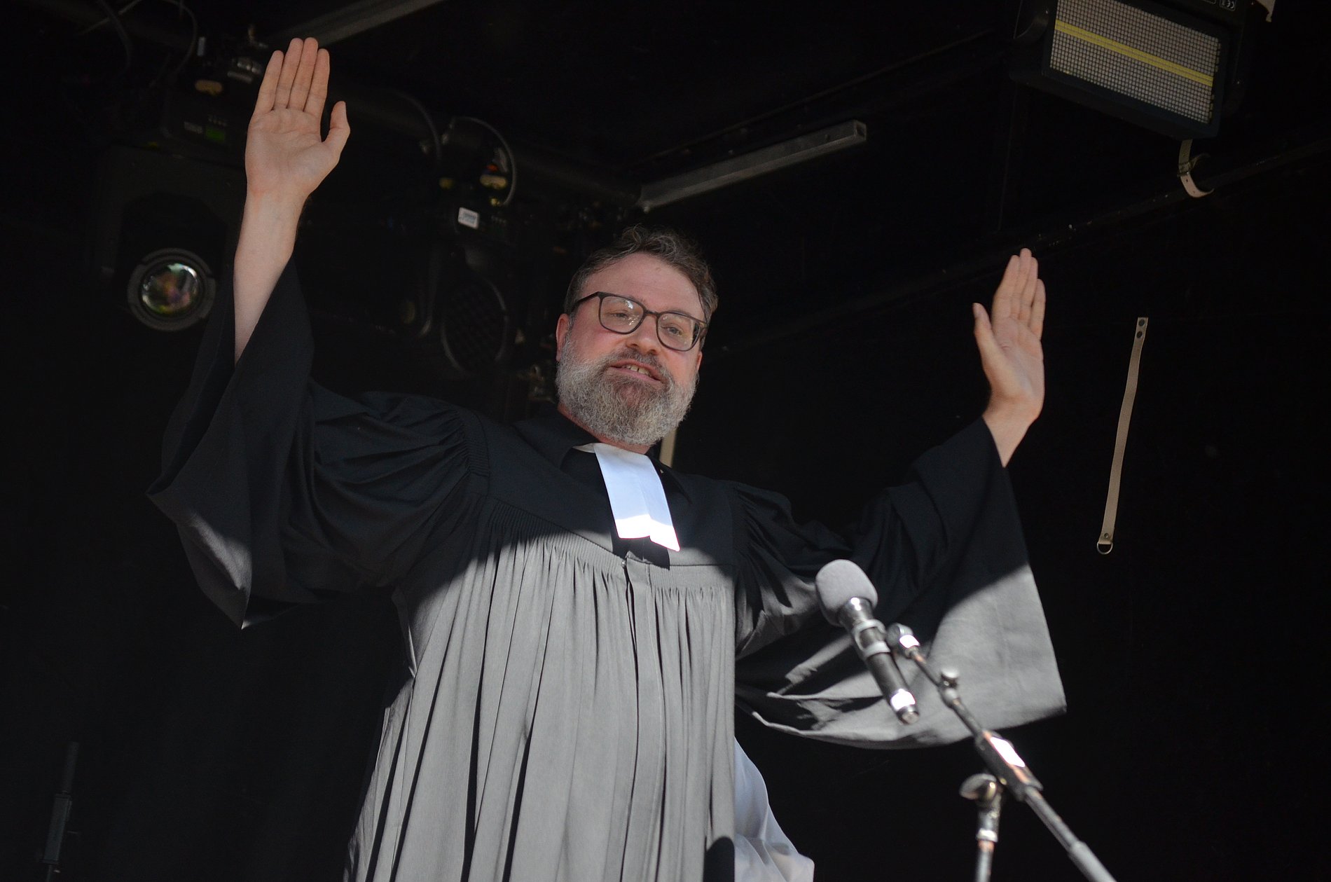 Doch Hiob ist sich dann doch sicher: „Gott macht es wie er will. Das ist das Gold, komme, was wolle.“ Pfarrer Heinemann predigt zur Kerbegemeinde, dass man sich von Hiobs Glauben überzeugen lassen sollte.