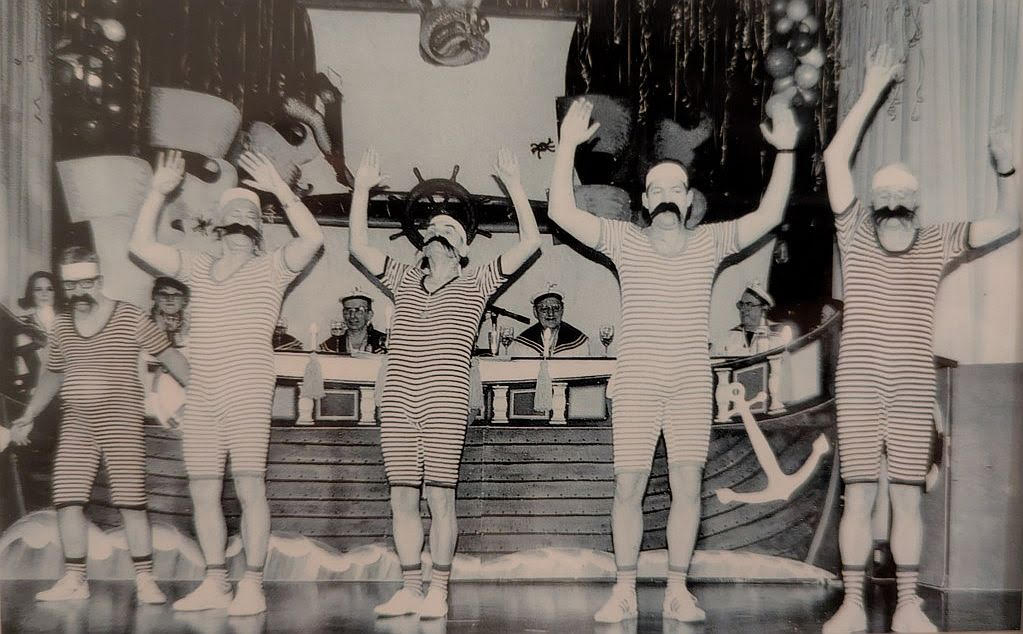 So ziemlich von Anfang an konnte sich das Publikum über ein Männerballett amüsieren. „Eine Weile lang gab es sogar das Senioren-Männerballett „Turnvater Jahn“, erzählt Markus Schwander, der 1993 als jüngster Tänzer dazustieß. Er erinnert sich noch gut an die blau-weißen und rot-weißen Badeanzüge, die Latex-Glatze und den Schnurrbart, die sie damals trugen.