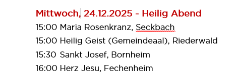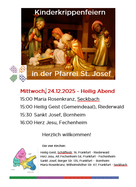 Hier finden Sie eine Übersicht über alle Krippenspiele, die in unserer Pfarrei am 24.12.25 angeboten werden