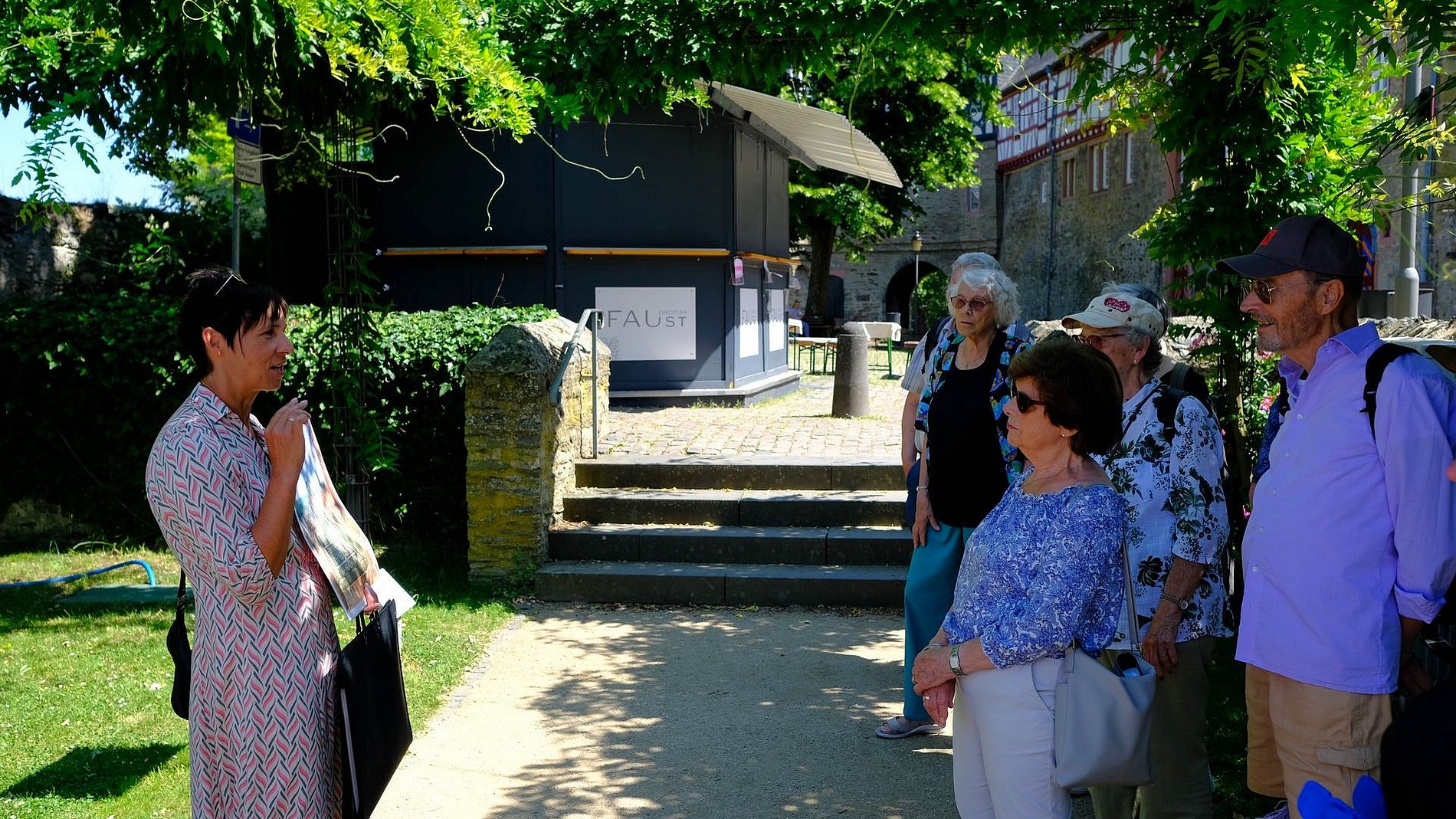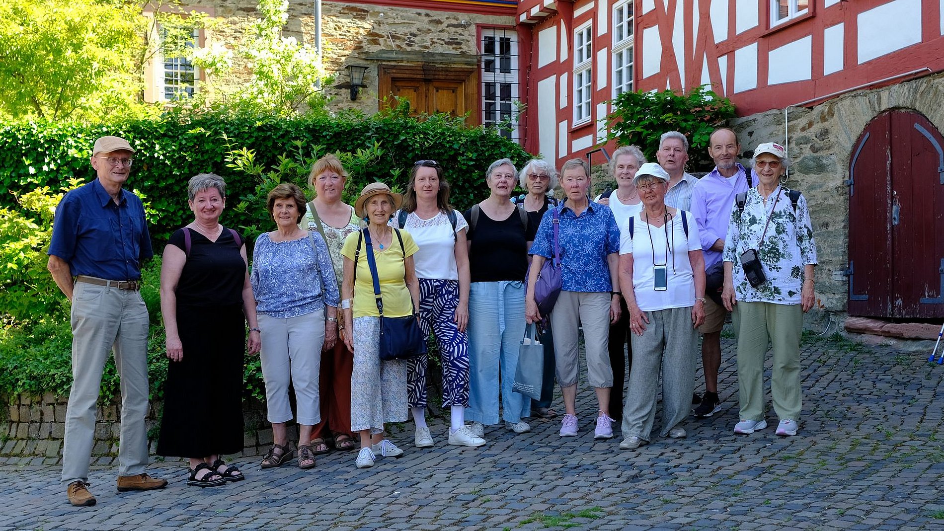 Am Ende einer Stadtführung stand der Besuch der Außenanlage des Idsteiner Schlosses. Hier gab es faszinierende Geschichten aus der Geschichte Idsteins zu hören. Auch die Bahn spielte bei der Hin- und Rückfahrt mit, so dass ein weiterer schöner Ausflugstag in den Annalen von "Kirche und Kunst" verzeichnet werden kann.