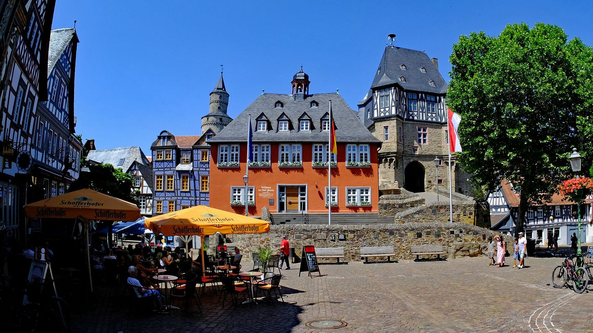 Die schönsten Fachwerkhäuser, wohin man auch blickt. Und das eine oder andere Haus der Altstadt versteckt hinter seiner Putzfassade ebenfalls einen Fachwerkbau. Jedoch ist Idstein kein Museum. Alle Altstadthäuser Idsteins sind bewohnt. Das bestaunenswerte Fachwerk alleine wäre schon Grund für eine Fahrt an diesem sonnigen Tag gewesen. Aber es kam noch besser.