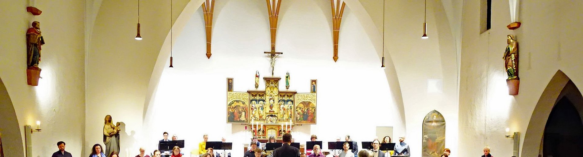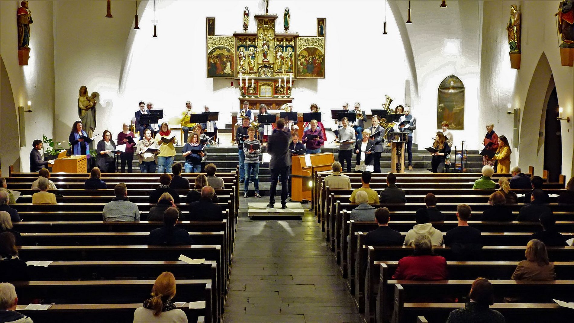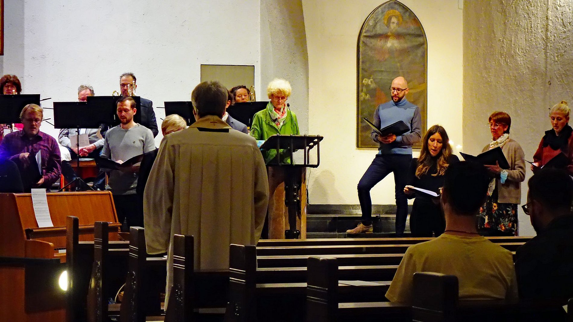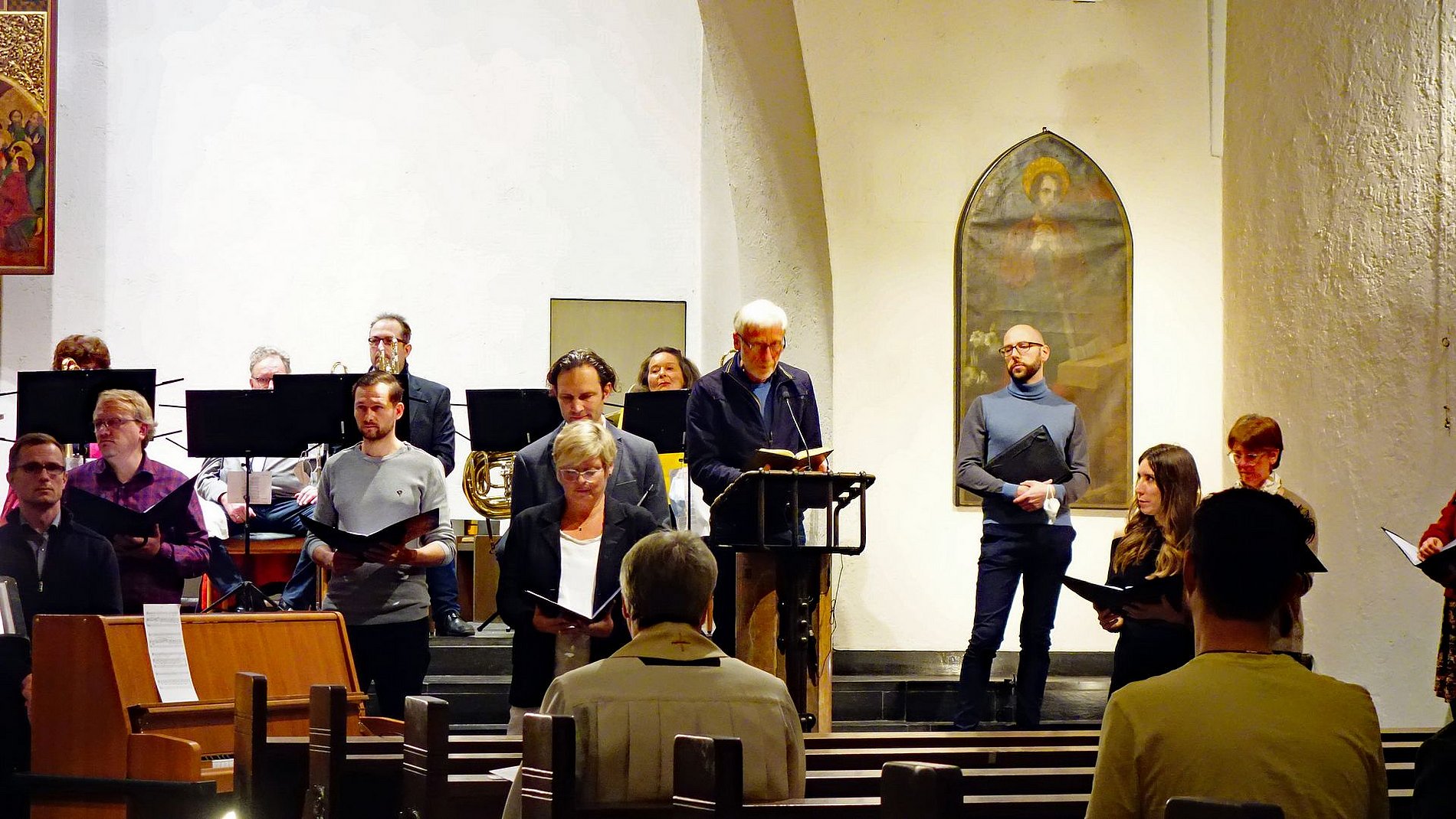 Unter der Leitung von Notker Bohner gestalteten die Junge Kantorei St. Josef und der Posaunenchor der evangelischen Gemeinde Bockenheim – blech inTakt – den Gottesdienst musikalisch.