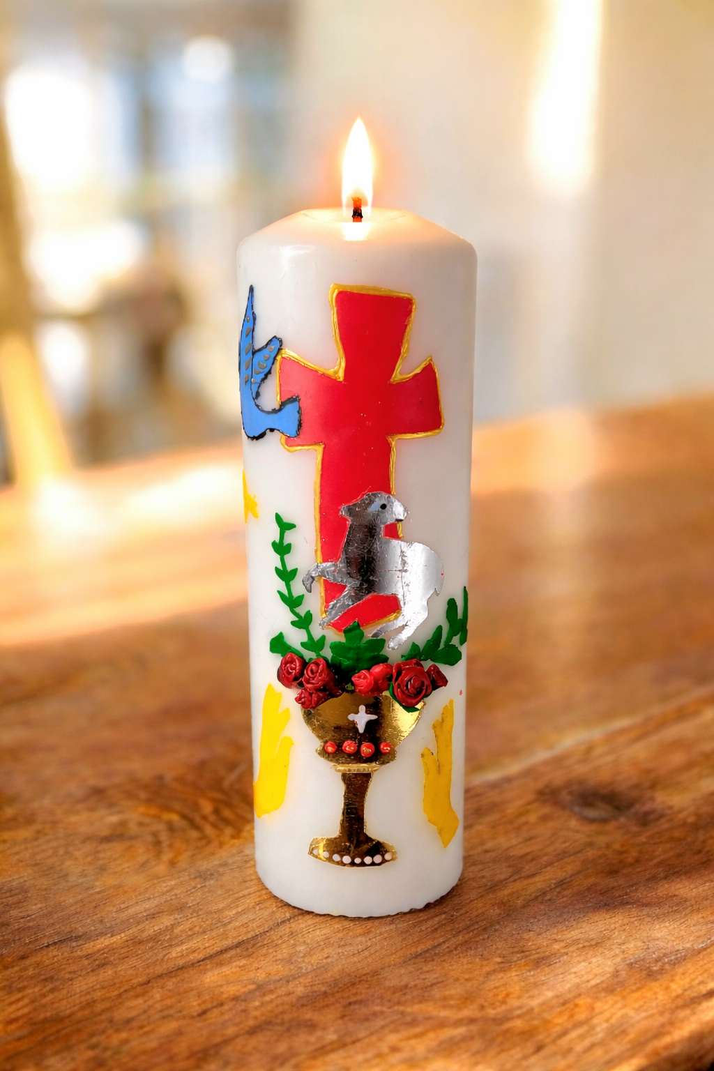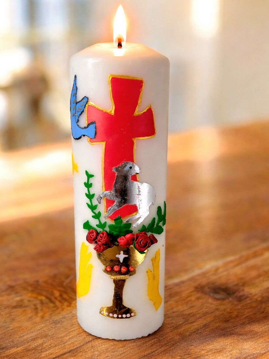 In den ersten Gruppentreffen wurde unter anderem eine Kerze gemeinsam gestaltet. Diese brennt nun immer bei den Gruppentreffen wenn eine Geschichte von Jesus gelesen wird.
